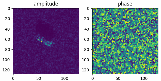 import pyaibox as pb import matplotlib.pyplot as plt filepath = datapath + 'BTR70_HB03787.004' x = pb.mstar_raw(filepath, ofmt='ap') print(x.shape, np.max(x), np.min(x)) plt.figure() plt.subplot(121) plt.imshow(x[..., 0]) plt.title('amplitude') plt.subplot(122) plt.imshow(x[..., 1]) plt.title('phase') plt.show()