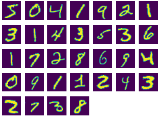 import pyaibox as pb rootdir = '/mnt/d/DataSets/oi/dgi/mnist/pics/' dataset = 'test' X, Y = pb.read_mnist(rootdir=rootdir, dataset=dataset, fmt='image') print(X.shape, Y.shape) rootdir = '/mnt/d/DataSets/oi/dgi/mnist/official/' dataset = 'train' X, Y = pb.read_mnist(rootdir=rootdir, dataset=dataset, fmt='ubyte') print(X.shape, Y.shape) plt = pb.imshow([X[i] for i in range(0, 32)]) plt.show() dataset = 'test' X, Y = pb.read_mnist(rootdir=rootdir, dataset=dataset, fmt='ubyte') print(X.shape, Y.shape) plt = pb.imshow([X[i] for i in range(0, 32)]) plt.show() # output (10000, 28, 28) (10000,) (60000, 28, 28) (60000,) (10000, 28, 28) (10000,)